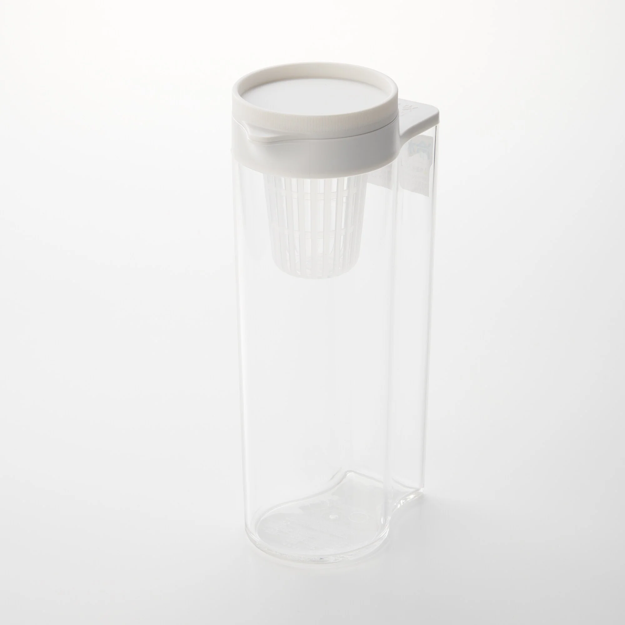 A pitcher perfect for cold teas and fruit-infused beverages. Each part can be removed and cleaned. It can stand upright or on the flat side of your fridge.